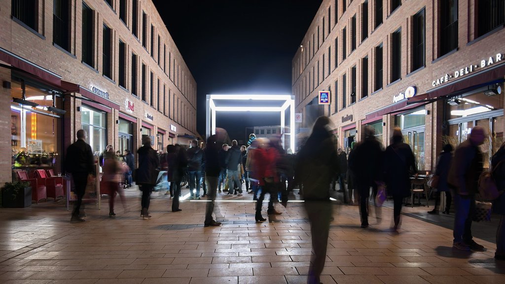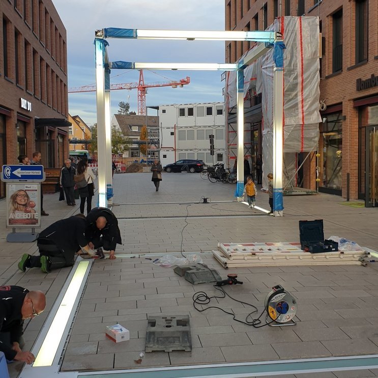 Für die Fußgängerzone der Stadt Monheim entwarf der Künstler Mischa Kuball eine permanente Licht- und Soundinstallation. Für die Firma Arnold AG entwickelten wir die Software der interaktiven Installation und unterstützten das Projekt bei der Schnittstellenkoordination und in seiner technisch-konzeptionellen Planung.